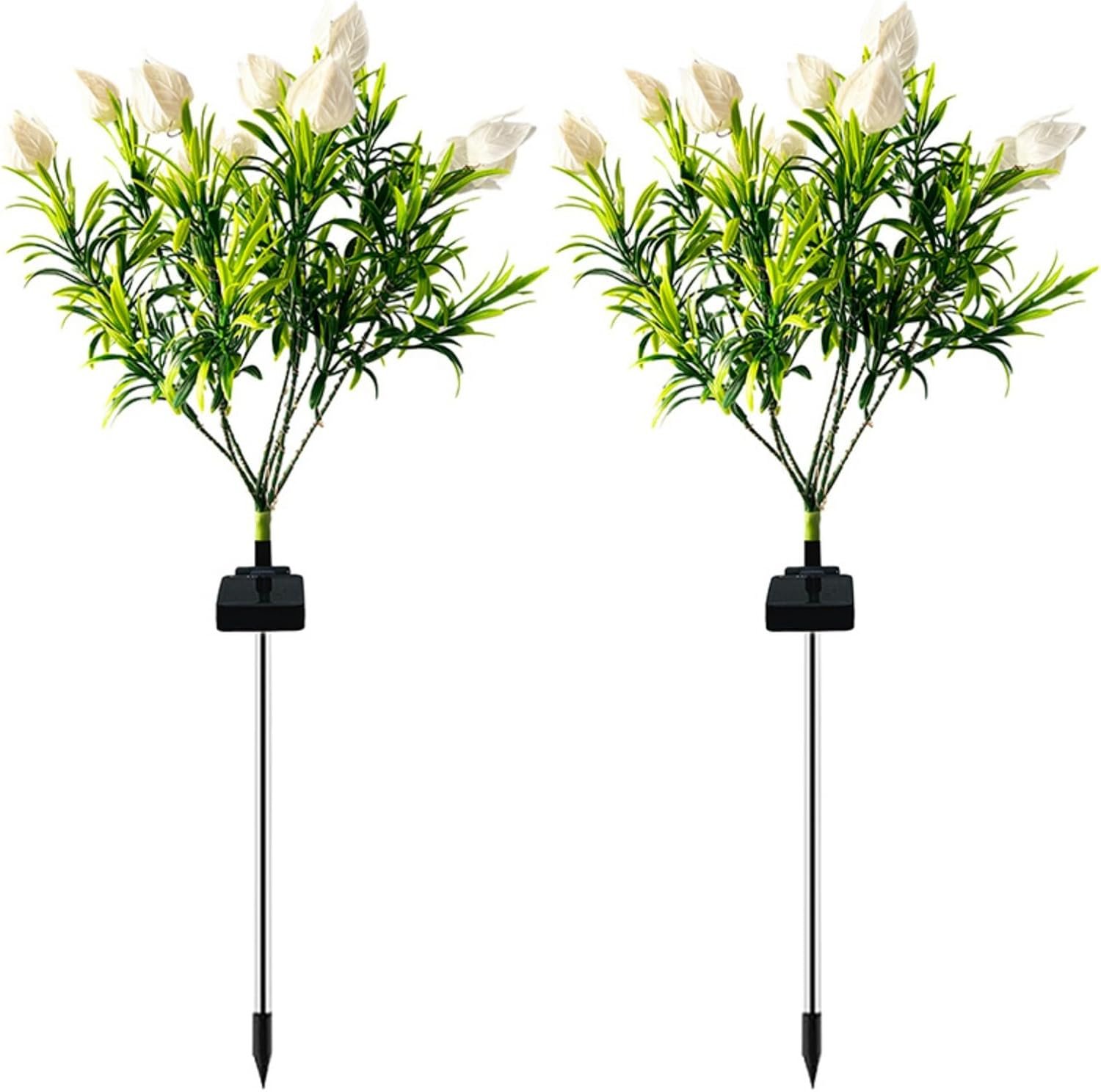 2 Pack Solar Garden Lights, Outdoor LED Solar Gardenia Lights, Waterproof Flower Solar Lights for Yard, Patio, Pathway Decoration