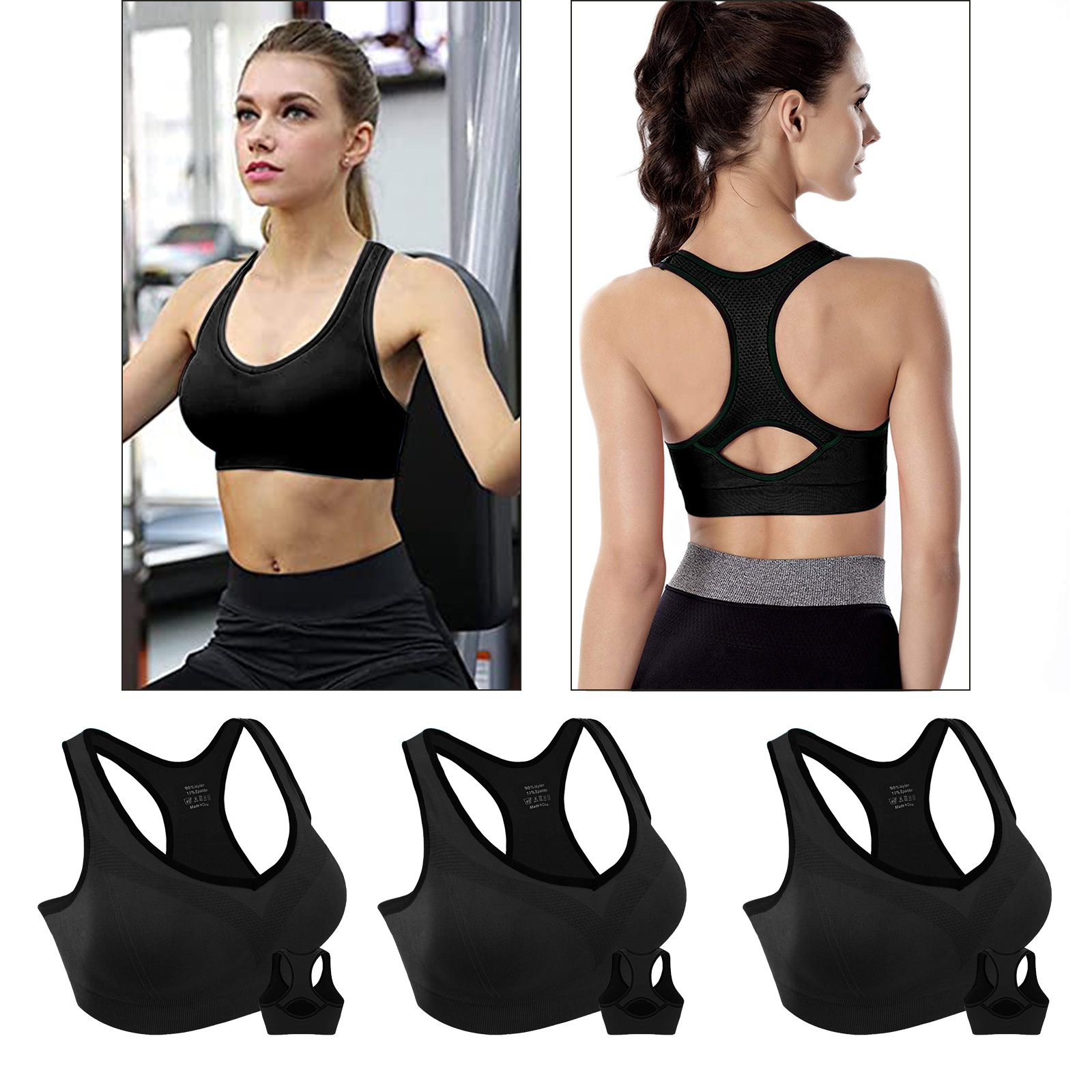 3 Pack Women Racerback Sports Bras, High Impact Workout Yoga Bra for Gym Activewear Fitness (Balck, XXL)