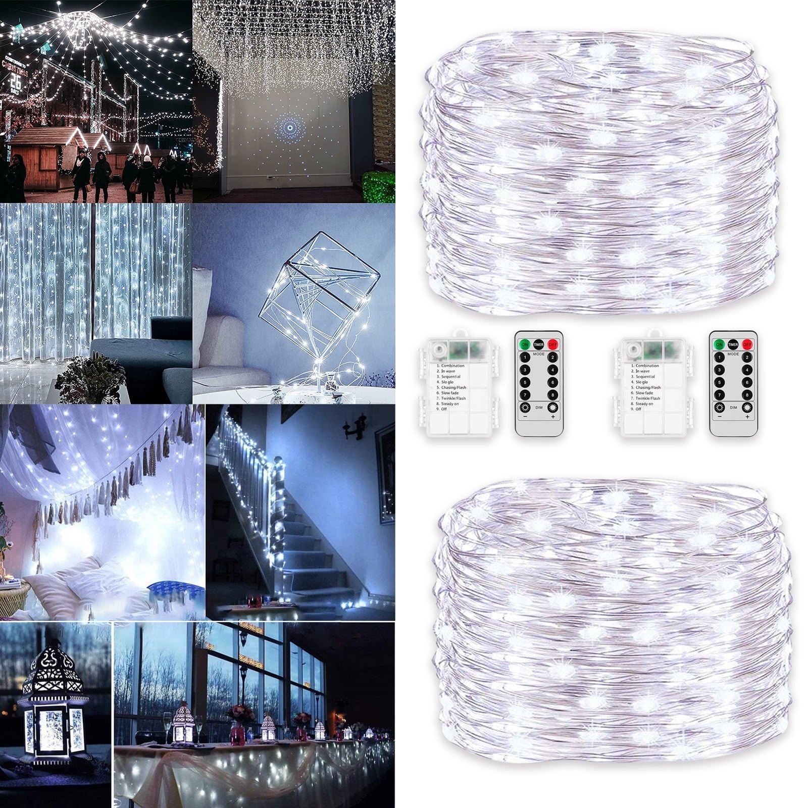 33 Feet 100 LED Fairy Lights with Remote Timer, 2 Pack Battery Operated Twinkle String Lights for Bedroom, Garden, Party, Christmas Indoor and Outdoor Decors Cool White