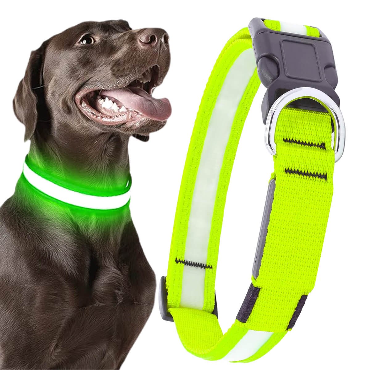 Syenll LED Dog Collar, USB Rechargeable Light up Dog Collar, Adjustable Safety Glowing Collar for Dogs (Green, XL Size)