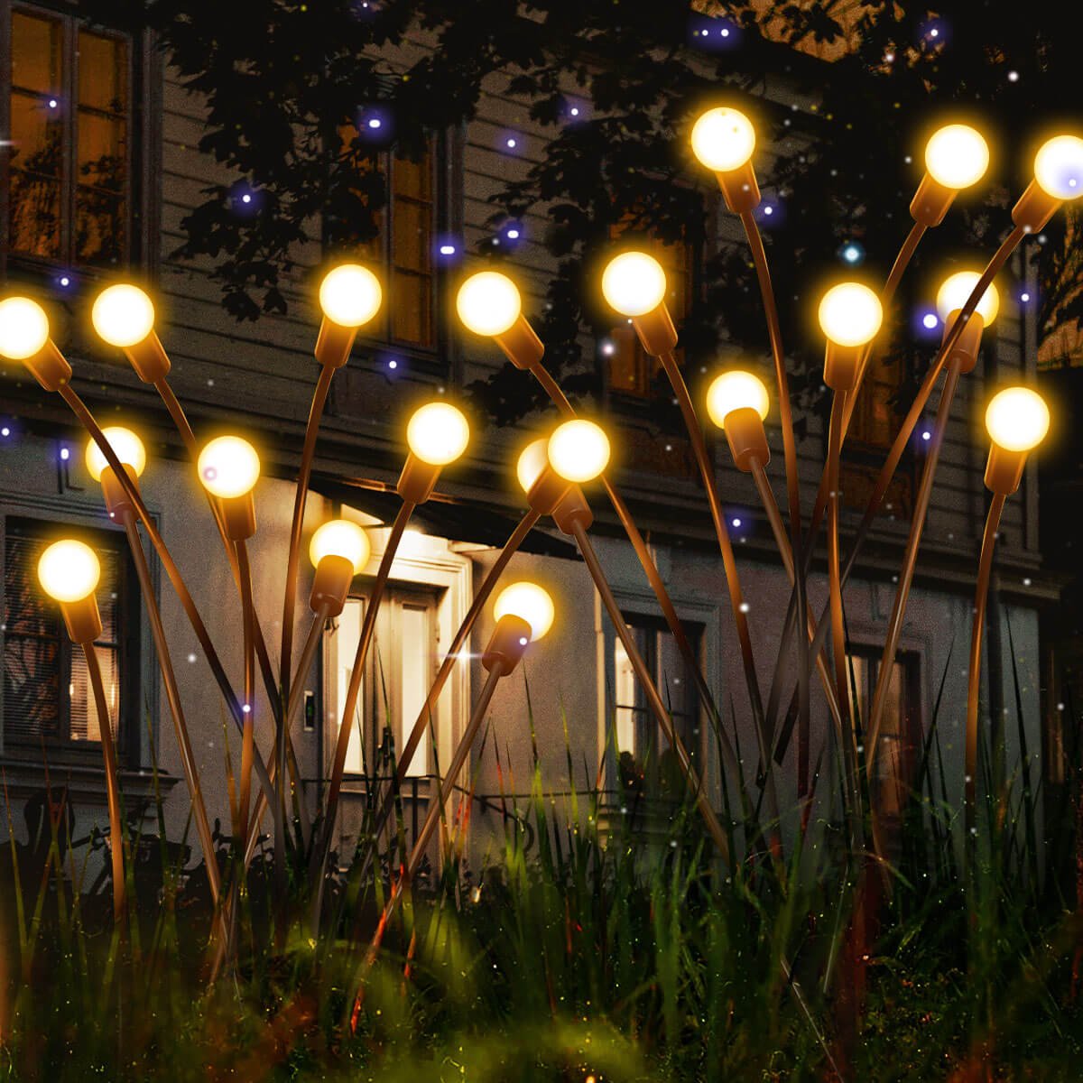 These unique solar garden starburst swaying lights each pack has 6 led little light bulbs. The unique feature is they can sway when the wind blows,you can walk out of your house just to enjoy their nightview beauty when there is wind blows. Perfect for your home, garden, walkway, pathway, yard, lawn, swimming pool and other outdoor decorative occasions.